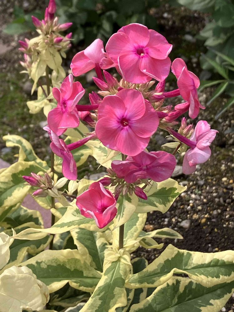 斑入り葉と鮮やかなピンク色で名前の通り華やかです