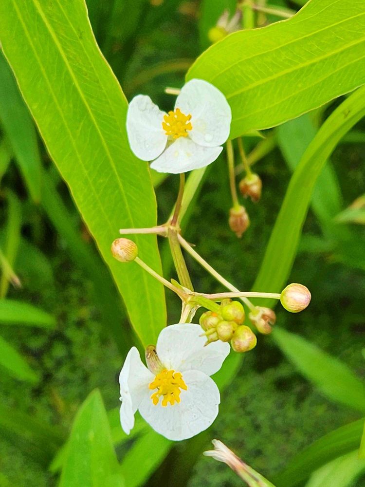 稲田の畦に咲いていて、オモダカかと思ったけど、葉がアギナシのようでした