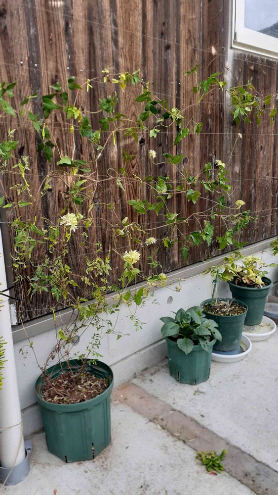 4枚目は植え替えて壁面誘引した白万重。