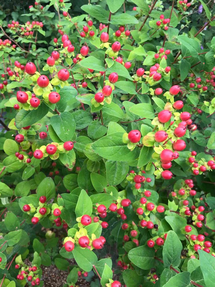 お花も、もちろん好きですが、この赤い実が大好きで、植えたヒベリカムです。