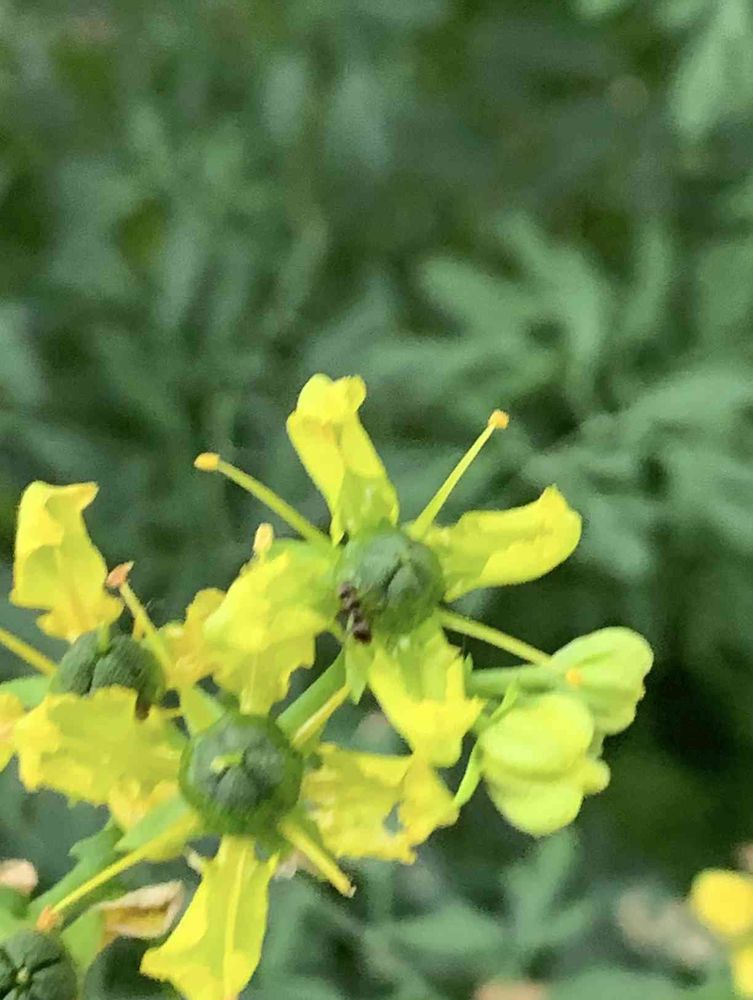 ルーの小さな黄色の花とナミアゲハの幼虫は、私の中でセットになりました。