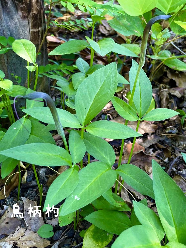 このpicのカラスビシャク、黒っぽくてカラス色みたいですね😅、しかし、本来の名前の由来はカラスとは小さいを意味し、変化した葉の形が柄杓のように見えることから、と検索記事にありました…。