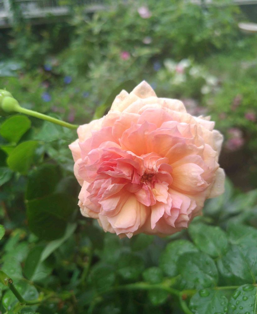 新しくお迎えしたアルカーナさん。一輪だけ咲いてもらいました。思ったよりかなり淡いアプリコットピンクです。