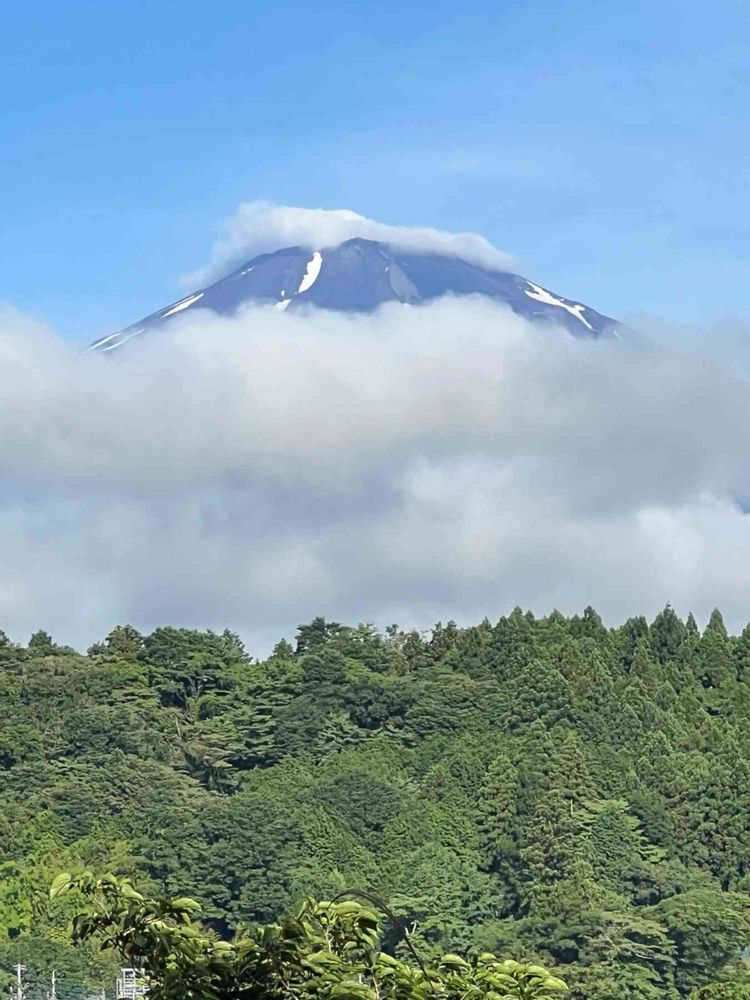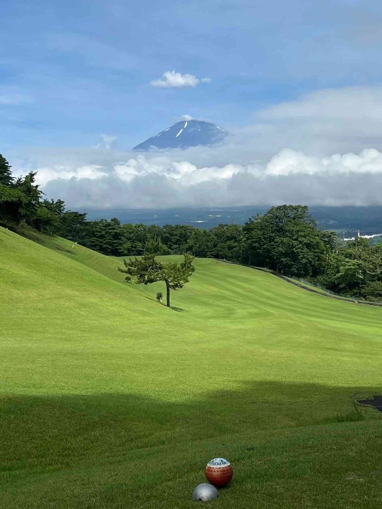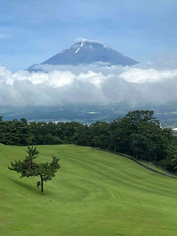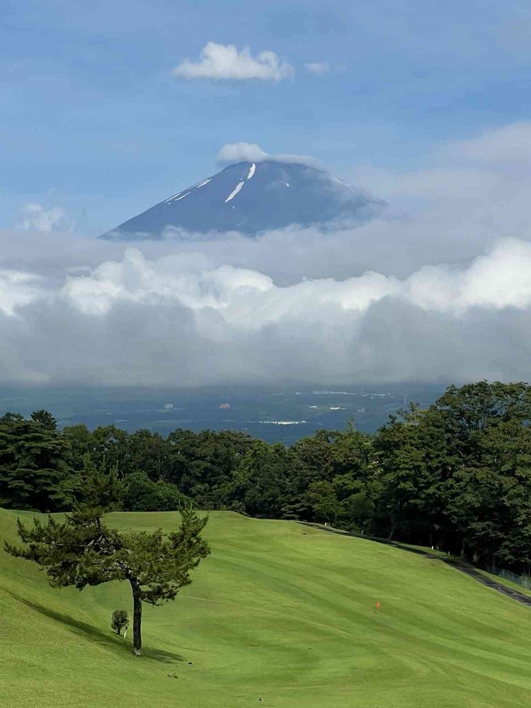 雲の多い富士山 ゴルフ場のグリーンが綺麗です😊