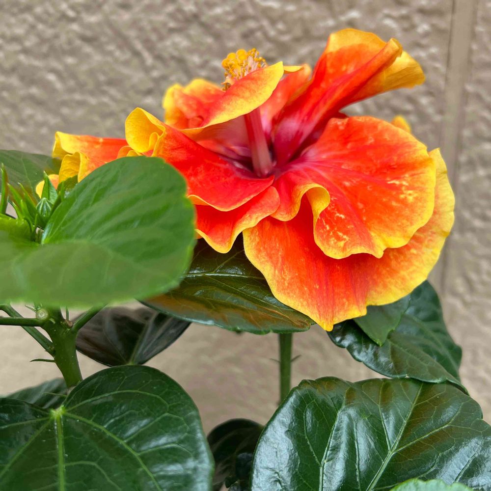 今年初めて迎えたハイビスカス・アポロダブル どんな花が咲くのか 待ち望んでいたら やっと咲きました👍🎶💕