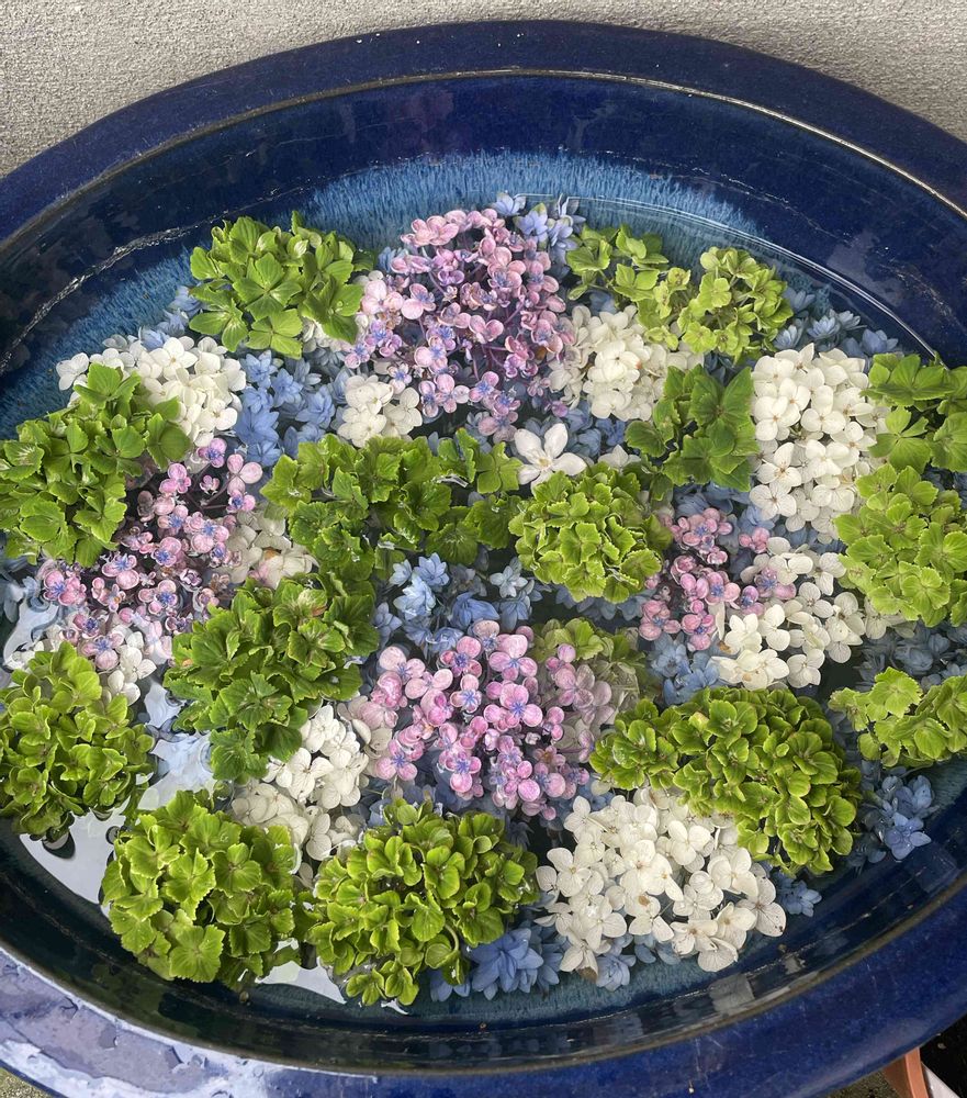 お家で大好きな紫陽花で花手水が幾つも出来るなんてステキ✨✨✨