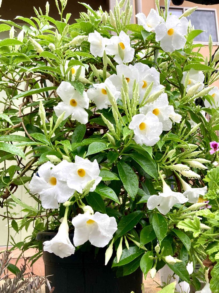 雨の中咲いてます。