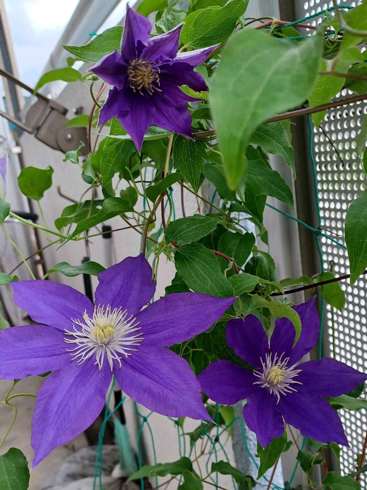 今年は雨が多いせいか、四季咲きクレマチスHFヤングがよく咲きます。濃くハッキリした色で。やっぱりこの花好きだなぁ🙂