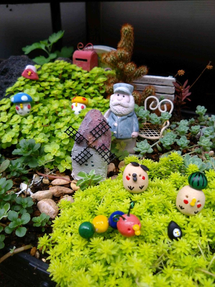 3枚目 セダムの絨毯に月の雫さんのカワユイ🍉ピータンチャン🍄ピータンチャンが嬉しそうですルンルン🎵🎶