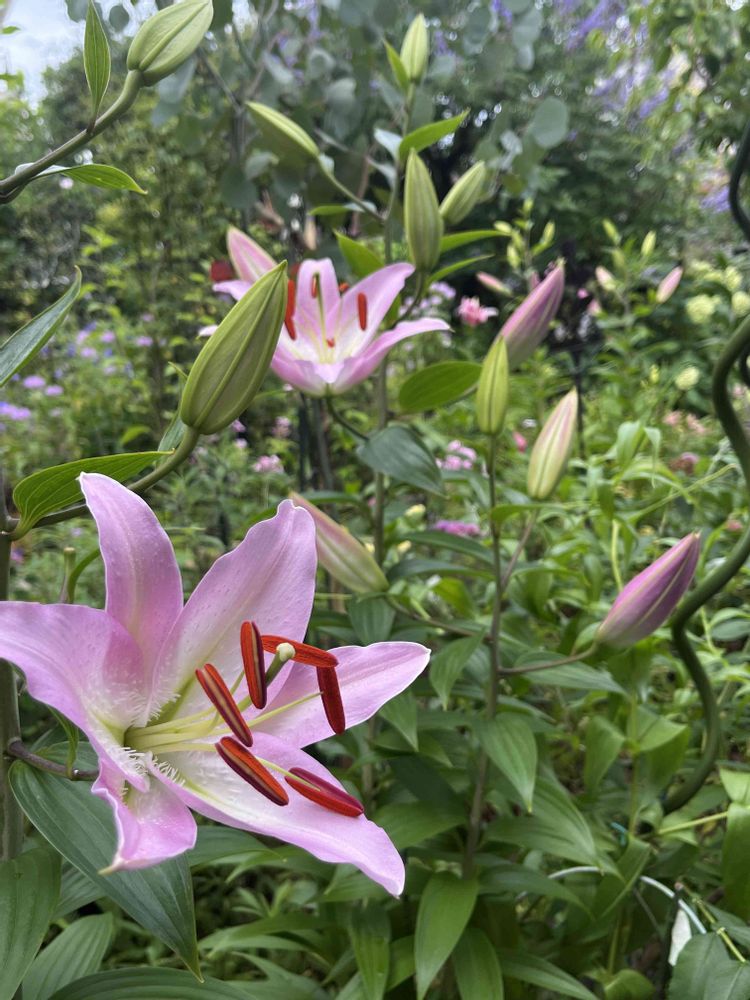 とっても沢山の百合、此れから次々と咲き揃ったら見事でしょうね。すみれさんちにお庭訪問してみたいです。☺️