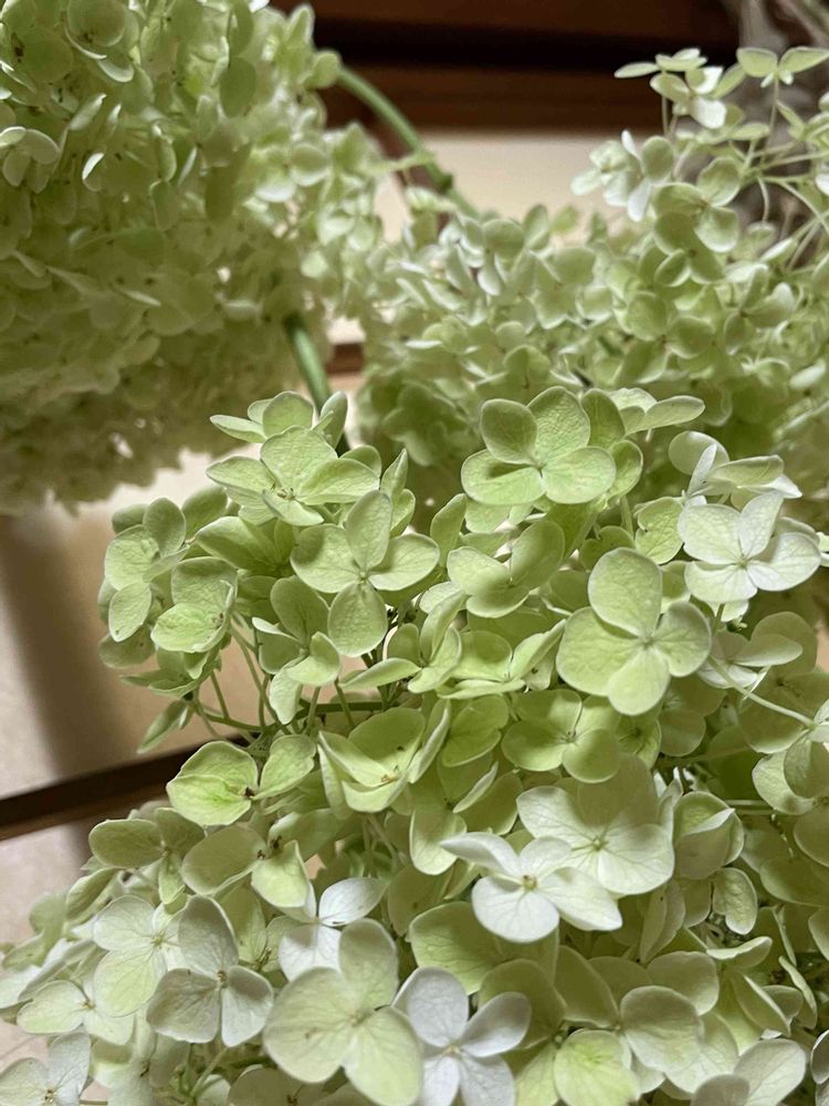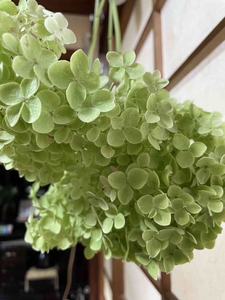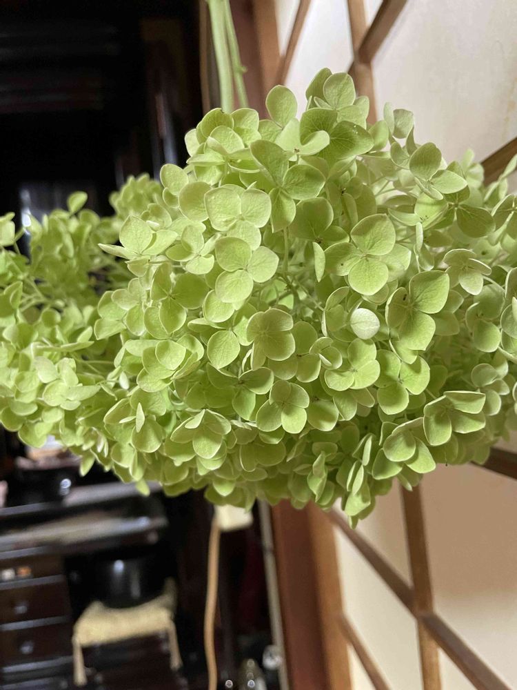 雨降りに折れたアナベルや黄緑色のアナベル居間に干しました🤭💕🎶