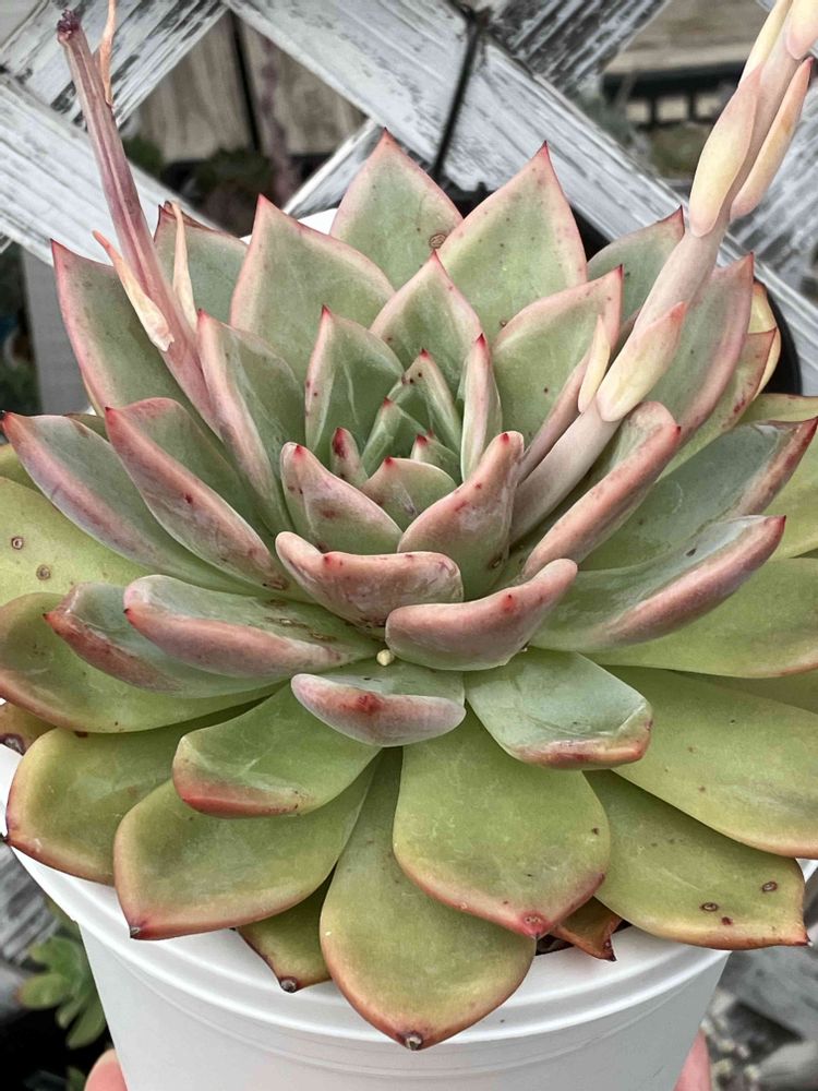 多肉にハマって最初にお迎えしたデカベリアでした(3年⁈)💦ずーーっと置き場所が微妙だったみたいで年中パッカーングリーン💦ここ数ヶ月日当たりバッチリ👌な所に移動…うっすらピンクに🩷嬉しい*。.(♥´꒳`*)人(*´꒳`♥).。*
