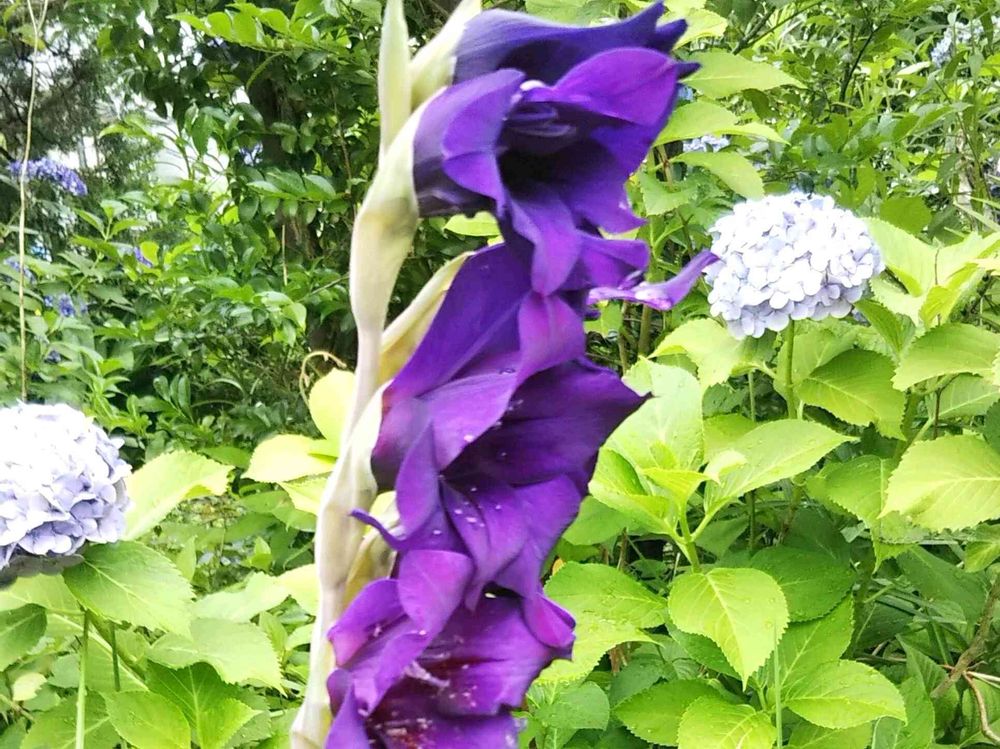 グラジオラスの紫🟣初めましてでちょっとびっくり🫢咲いてたら目立ちますね〜😍