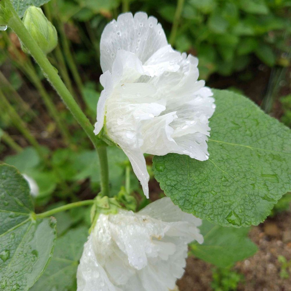 真っ白なタチアオイの花…🤍🤍🤍💚と…