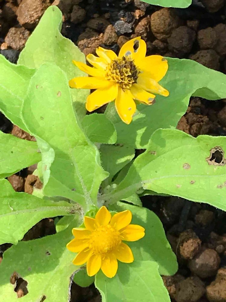 種を蒔いた、メランポジュームの花が、咲き始めました。嬉しい😃です。