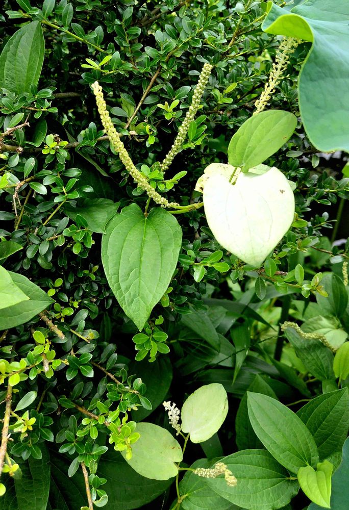 小花が並んで咲き その近くの葉が白くなり 涼しげに見える植物です😀