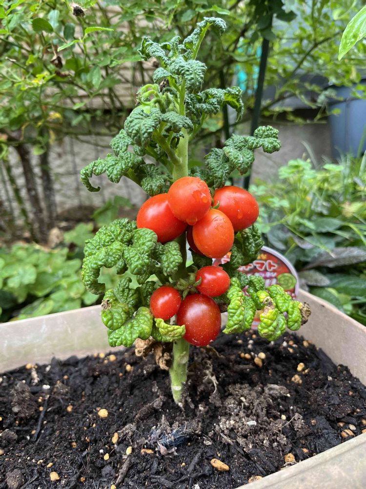 葉っぱが、普通のミニトマト🍅と少し違いますね。