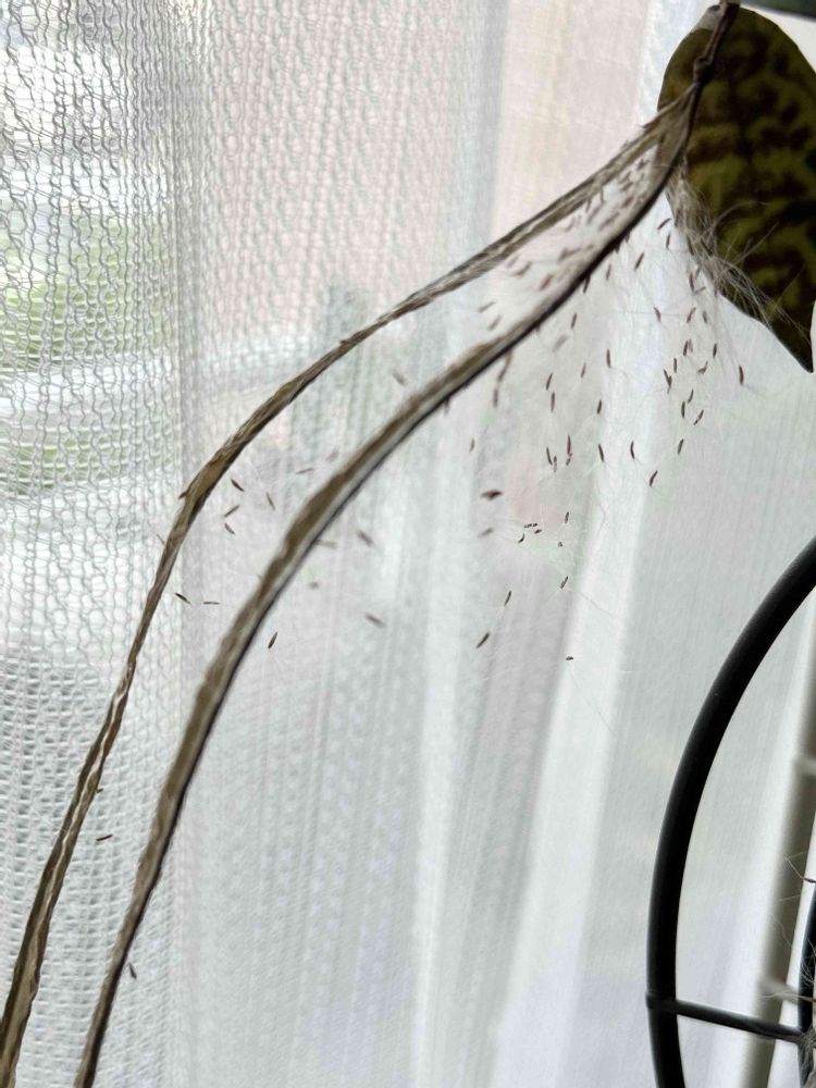 エスキナンサス マルモラタスの鞘が弾けて、フワフワが飛んでました😳