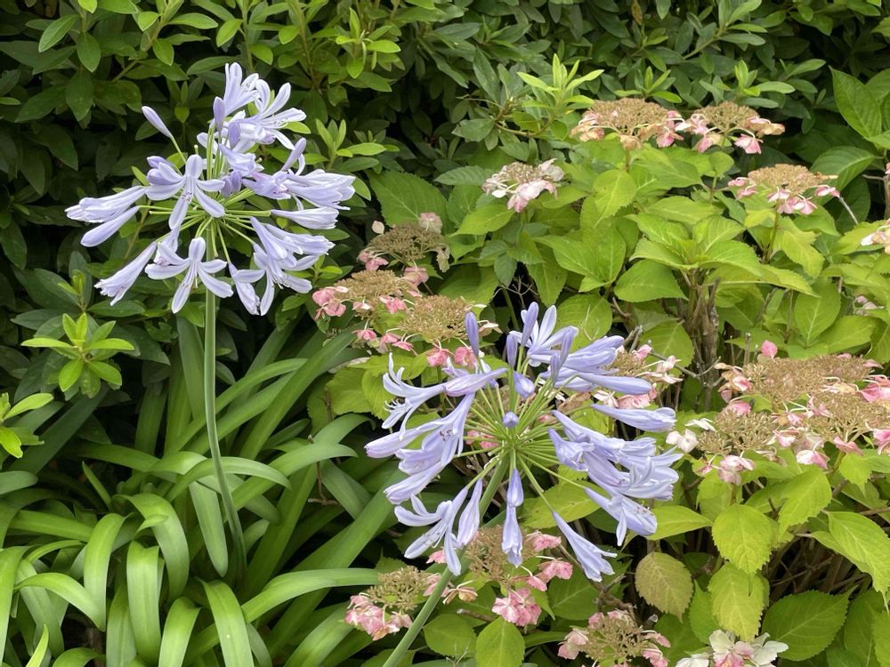 ⑤昨日は見頃も過ぎたアジサイとアガパンサスのコラボ