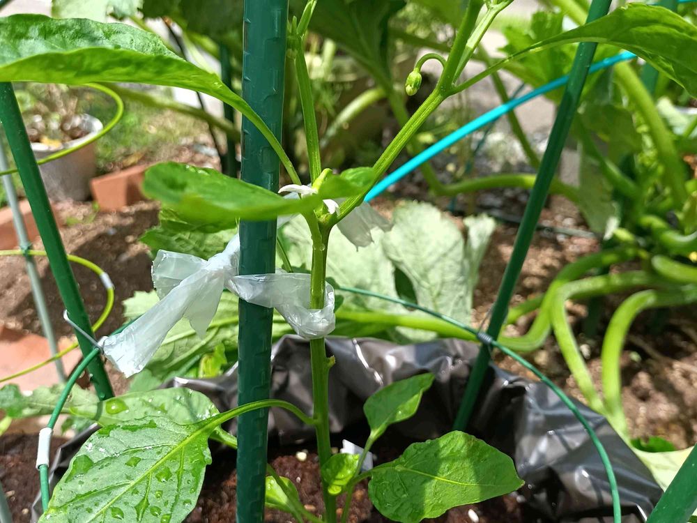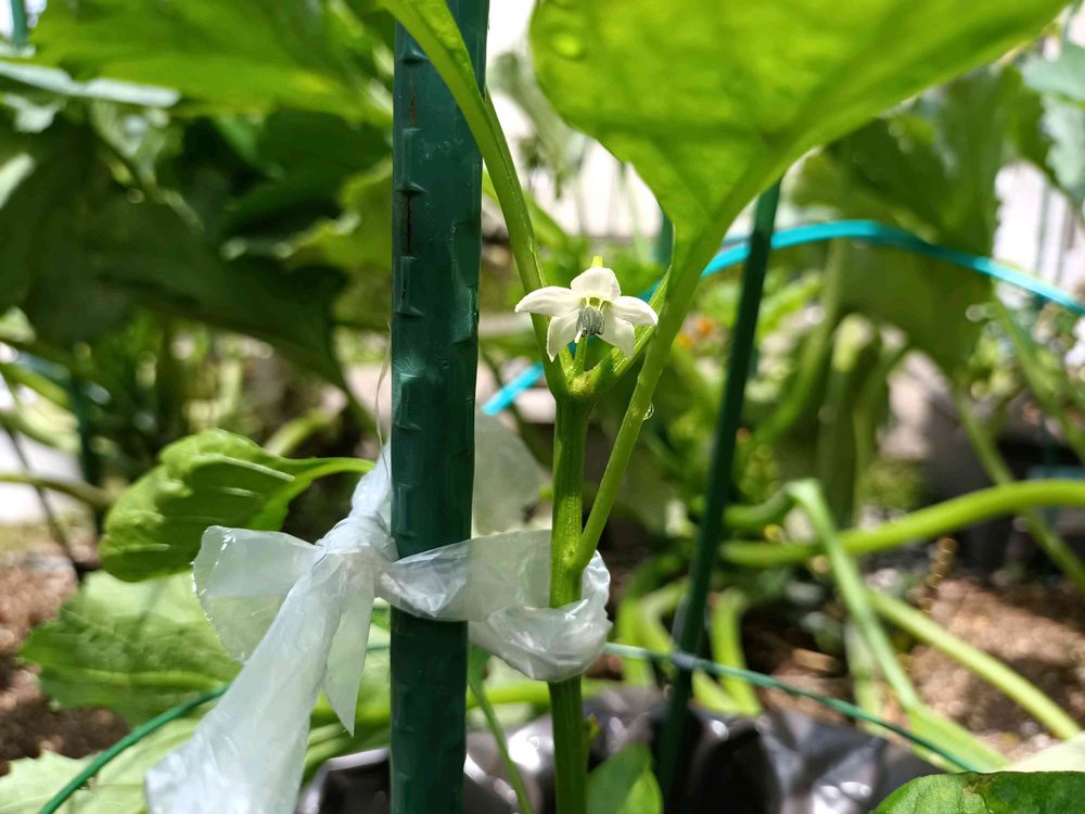 万願寺とうがらし、花が咲きました。ゆっくり成長していましたが、ようやく花を見れました。
