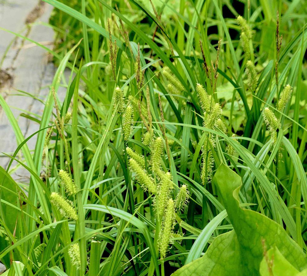 これもスゲ属ですね。この丈夫な葉で昔は蓑や菅笠を編んだ、カサスゲの仲間ですが、細く茶色い穂が複数立ち上がっています。