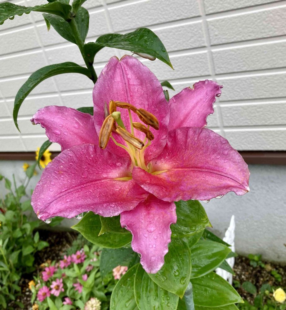 白いユリに続き、鮮やかな濃いピンクのユリが咲いてくれました🩷