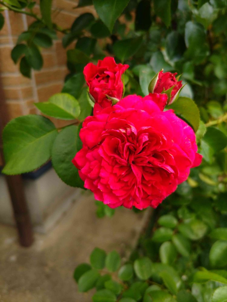 🌹フロント花壇の レッドレオナルドダヴィンチの2番花が咲き始めました、ここ数年で1番遅い開花です。