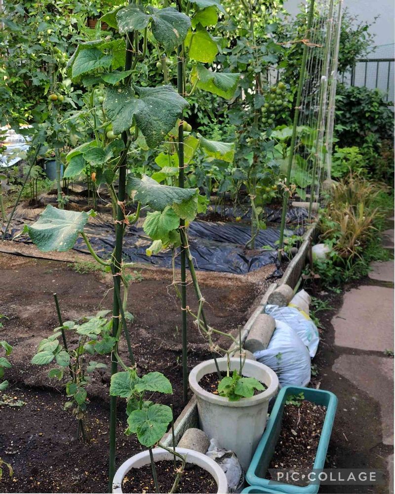きゅうりは 葉っぱが生き生きとしていたので 脇芽が出てくるんじゃないかと 肥料もやって 毎日 水 やりもしていました😊 デラウェア 赤紫色になるには 7月から8月かな😚 マスカットもあるけど 今年は植えたばかりだから まだ実がなっていません 名前のわからない ぶどうもあります😊
