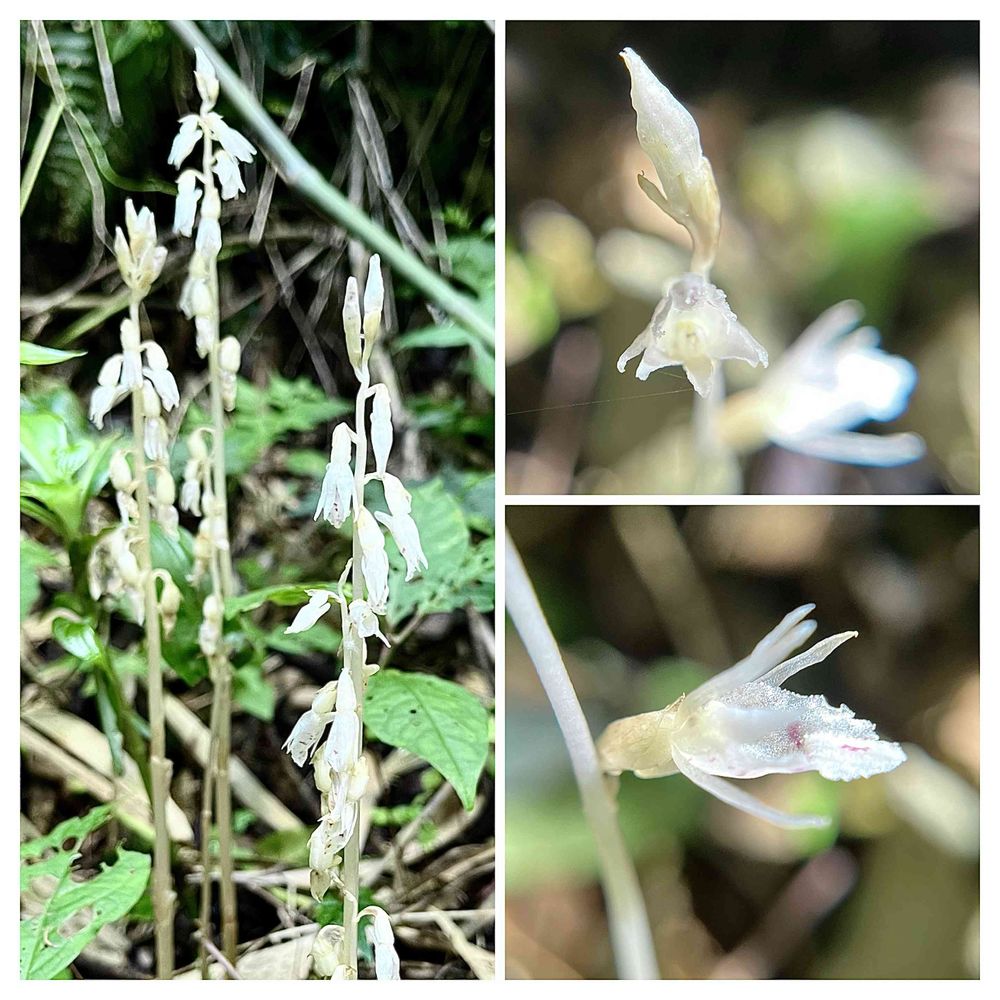 林の中の暗い道路傍にタシロランが群れて咲いてました。