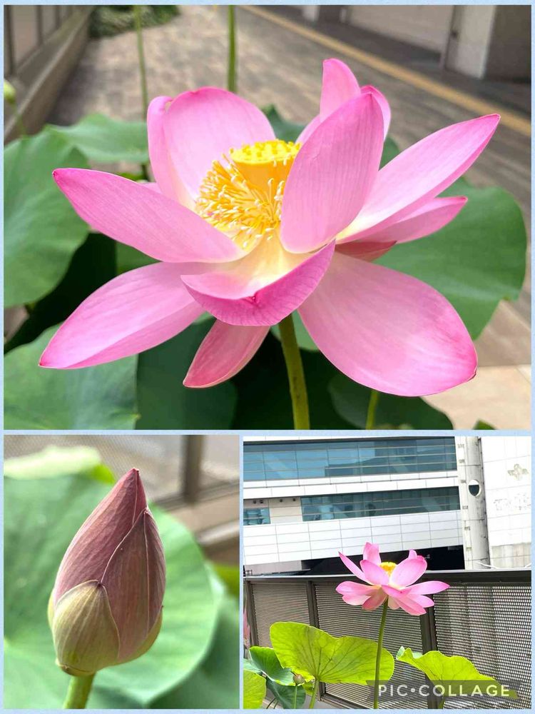 駅改札を出て右側の通路、鉢壺に入ったハス☺️🪷