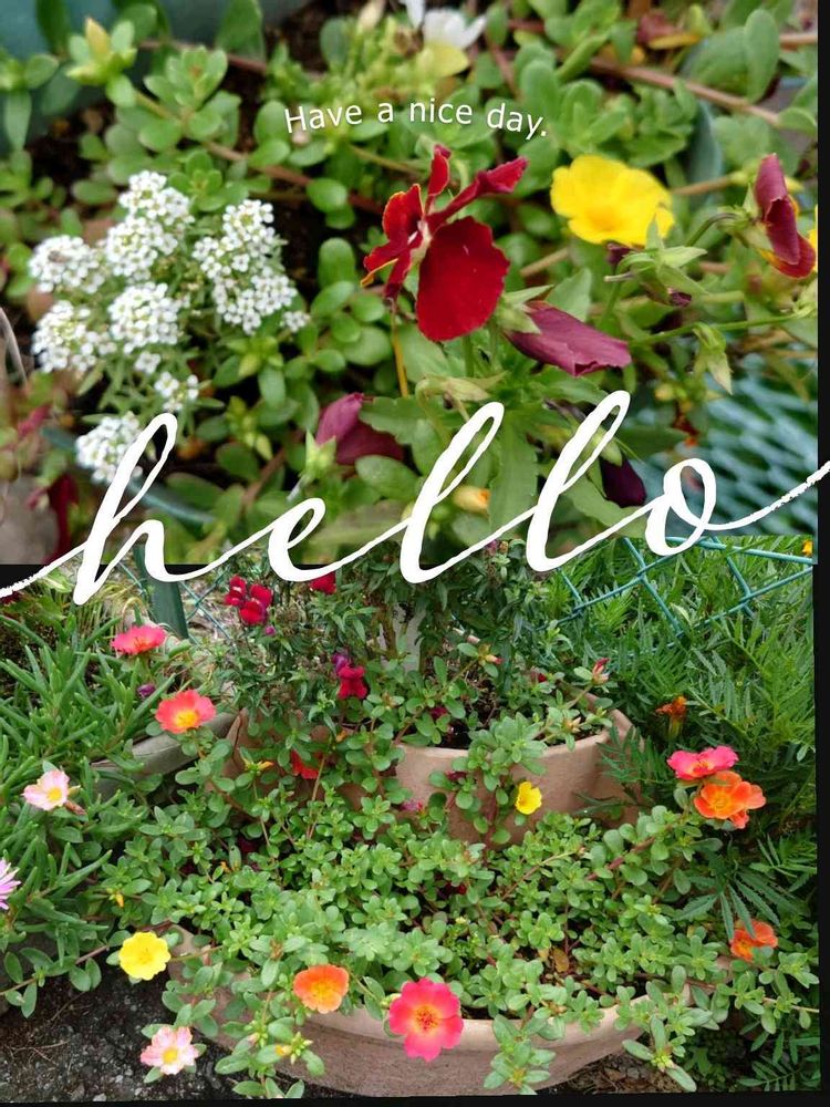 バンジーを抜いたハンギングに 割り箸で穴開けて ポーチュラカを摘んで挿しといたら やっと賑やかになってきたよ