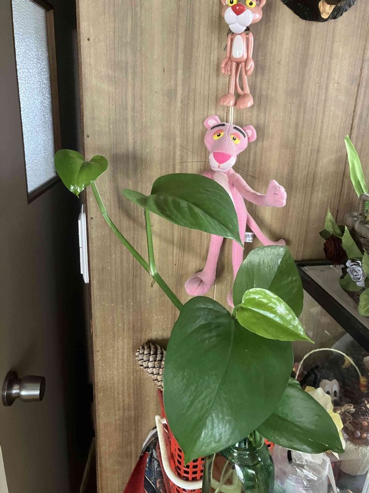 元気😃に、伸びてまとまらなくなって来たので、カット✂️してあちこちに水挿しして置いてますが、みんなとても元気ですよ😃もう1ヶ月ぐらいなるかな🤔