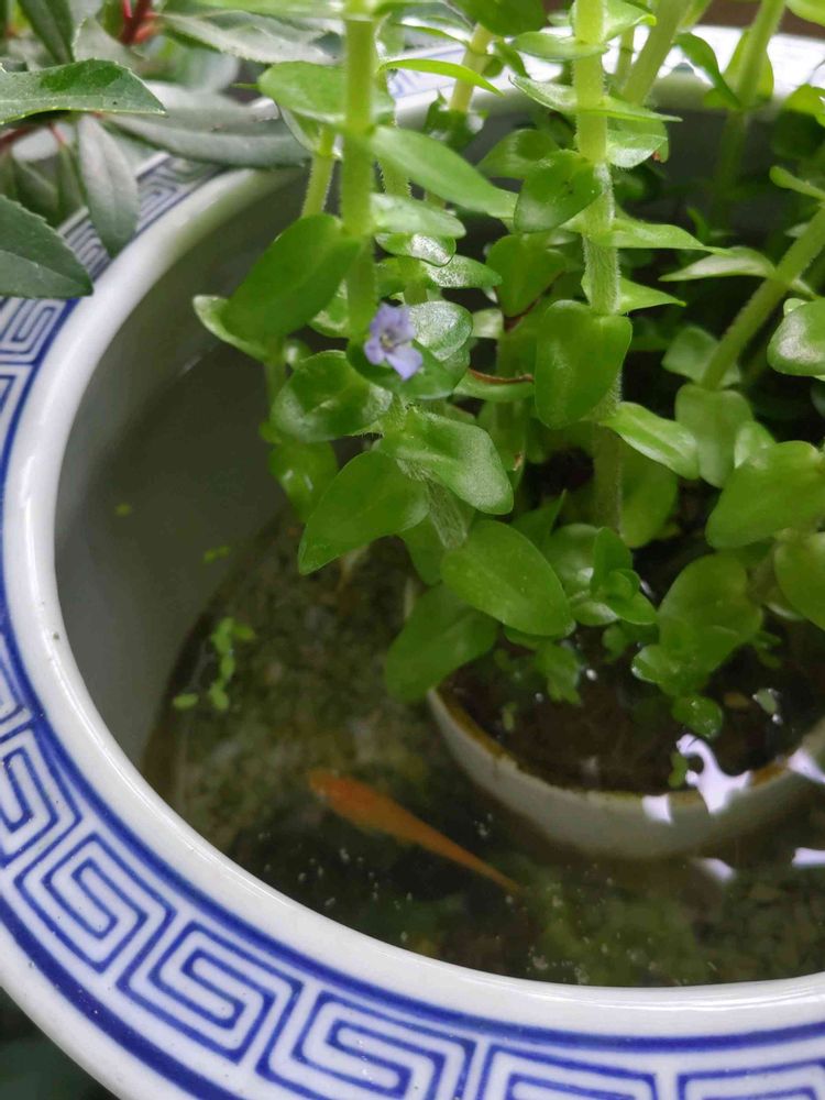 ウォーターバコパの花が咲いています。メダカも元気です😀