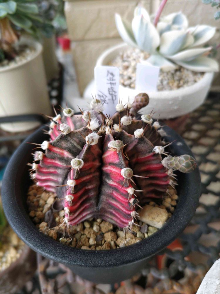 今年多肉友達から頂いたサボテン緋牡丹錦に花芽が2個も出てきています🙆🥰嬉しいね