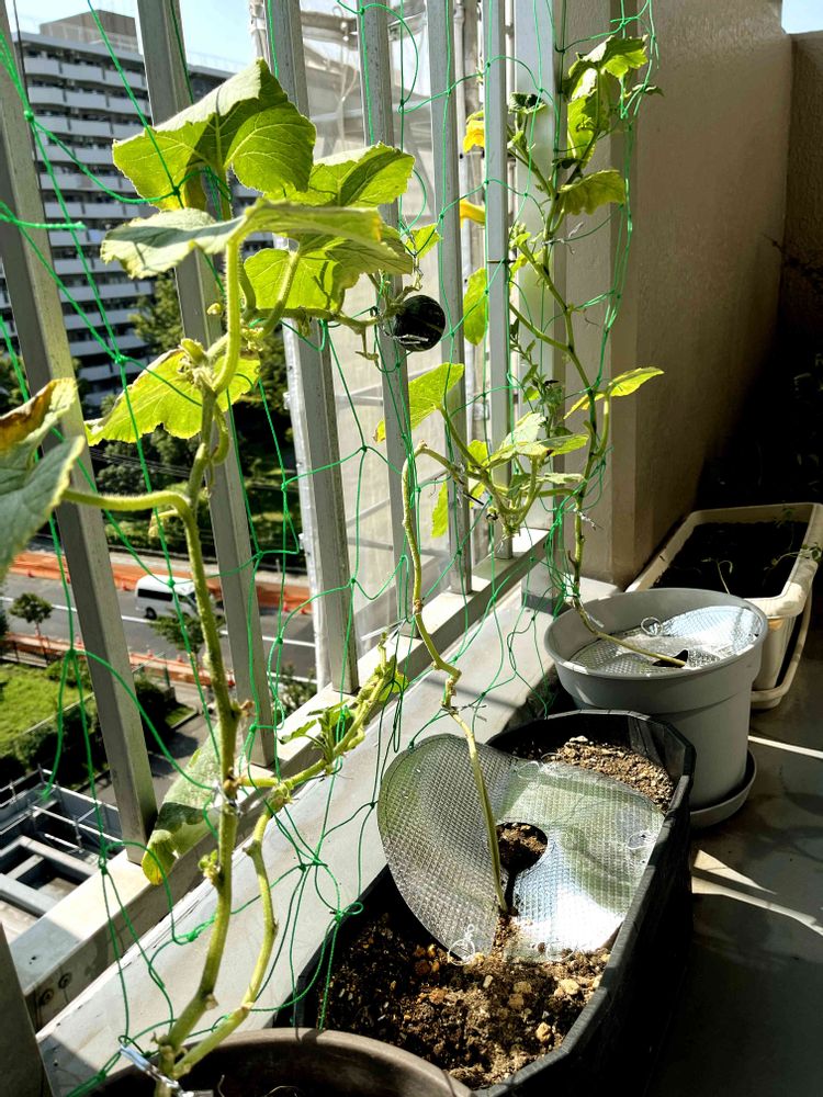 ③うどん粉病により葉をむしり取られ、惨めな姿のかぼちゃさん