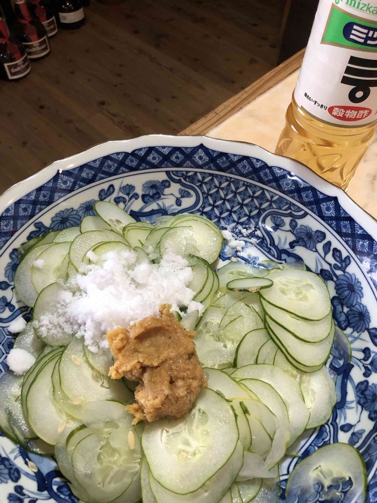 スライサーで、スライスして、砂糖、味噌、酢と合わせて、出て来た汁も飲みました。