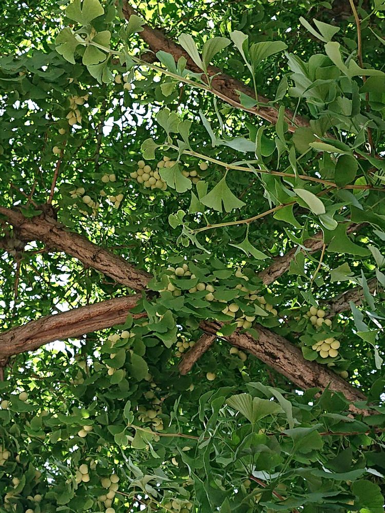 昨日は通院の日だったので日傘さして出かけました。今は木々の葉が青々としてとても綺麗でした。イチョウ並木に1本だけ雌株がありたくさん実がなってるのは嬉しかったです😆