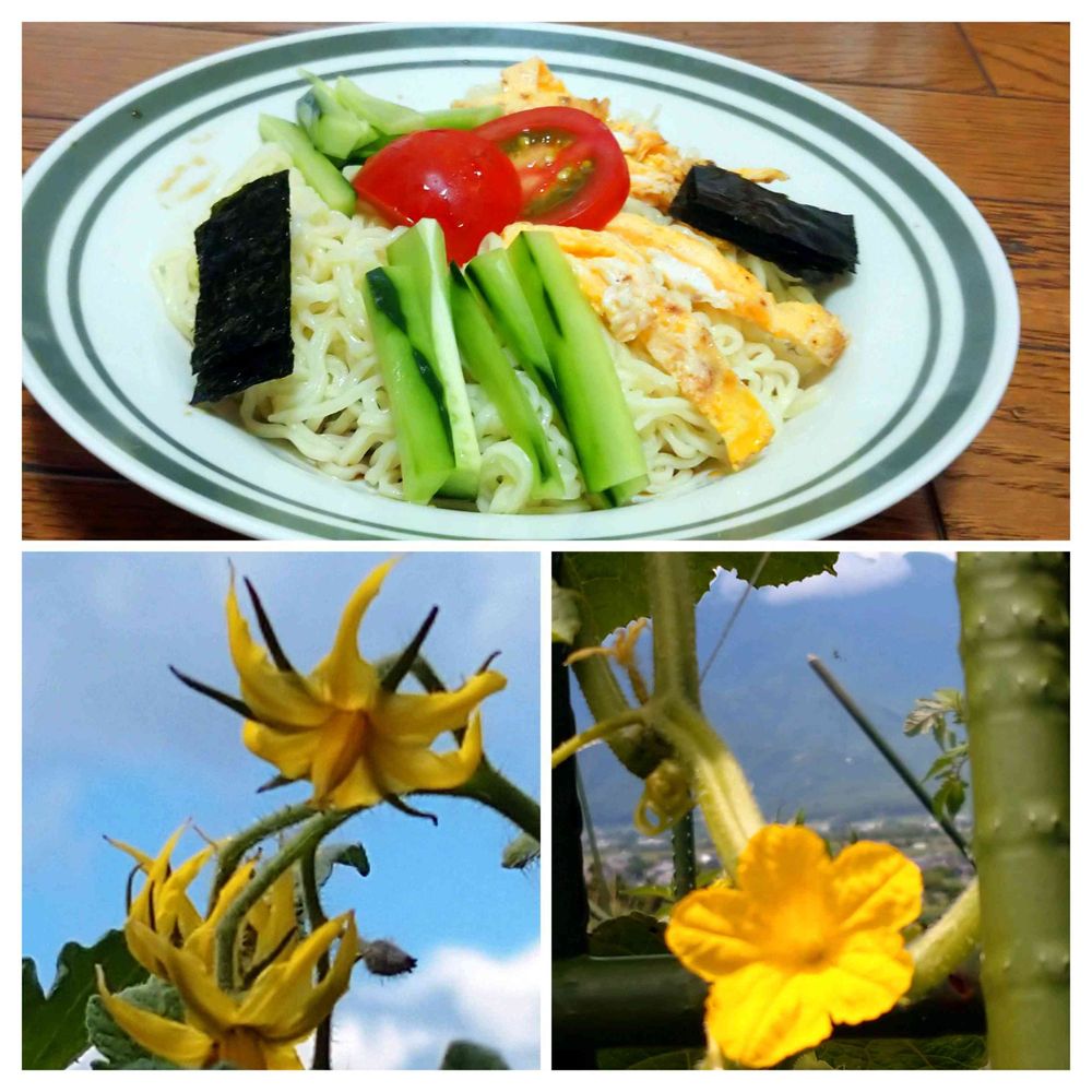 初収穫のトマト🍅トッピングの冷麺ですか…