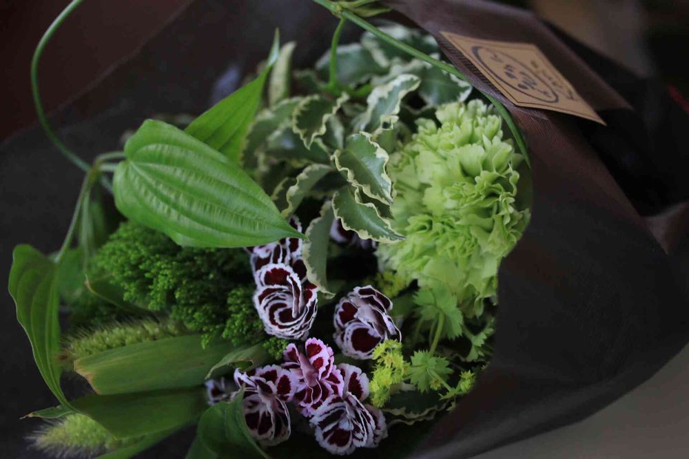 入れたい花を聞かれたのでグリーン系と答え後はお任せで、買い物している間に素敵なブーケを作っていただきました💐