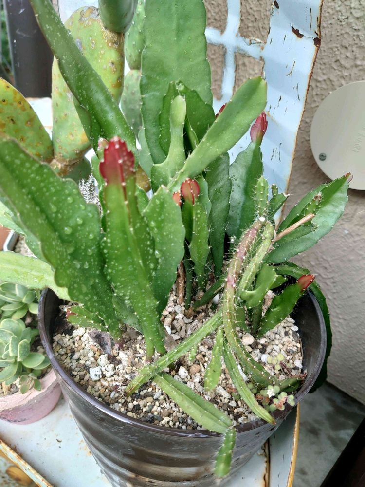 孔雀サボテン🌵新芽・・・なぜか赤くて可愛らしいよね~(ㅅ´ ˘ `)♡