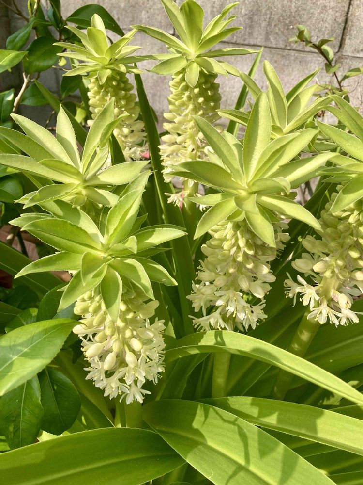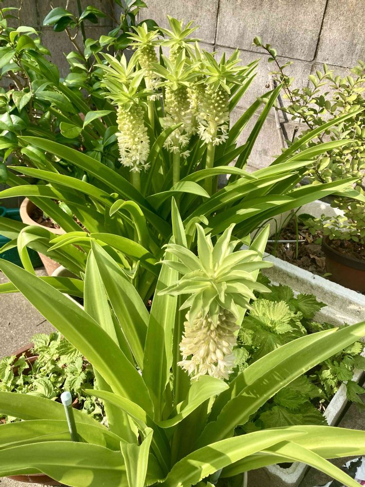 ご近所さん家の「パイナップルリリー」が今年も綺麗に咲いてくれた。