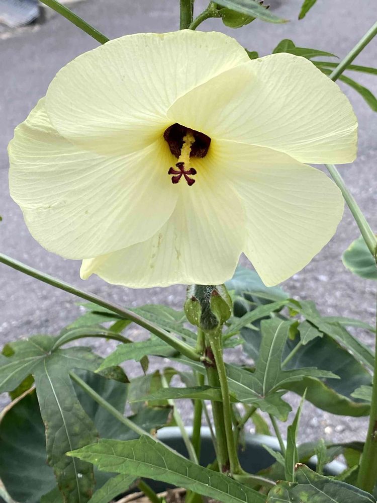 我が家の鉢植え🪴のオクラの花が咲きました。👏👏