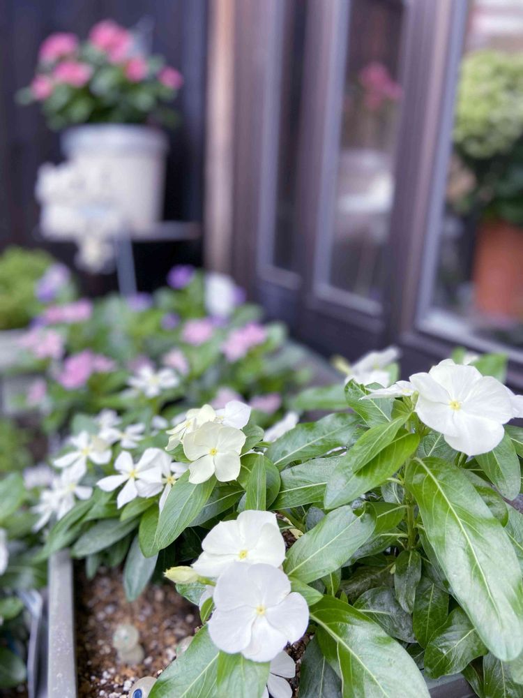 ハルタさんの北島園芸オリジナルビンカ,ニチニチソウ ゆずミント,玄関前の投稿画像