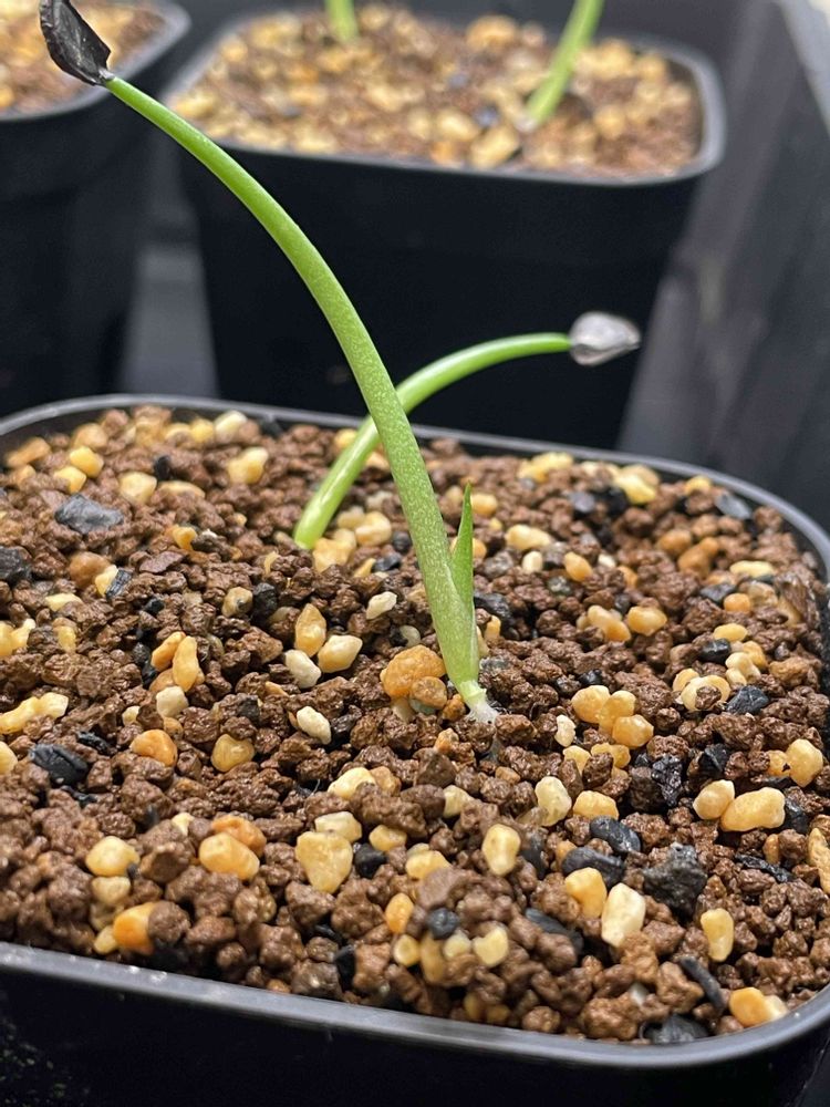 2024年3月22日に交配 2024年7月12日に結実した種を採取 2024年8月14日に種まき 2024年9月に発芽 その後、植え替えをして現在2025年7月に至る 今後の成長はアプリで記録 花が咲くまで継続