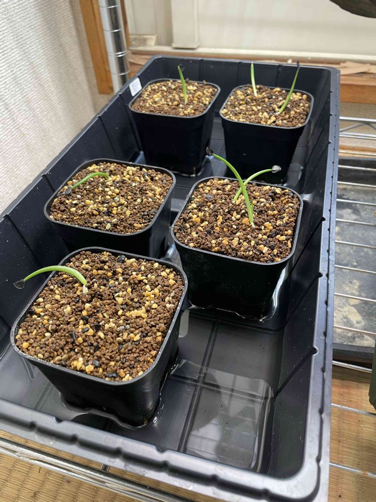 現状、2週間ギリギリの所で一粒が発芽し4苗のイシスメンシスと3苗のパリー トランカータ。