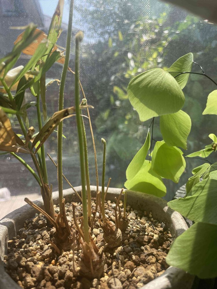 復活して芽を伸ばしてくれていふのだが、一向に葉が開かなず寂しそうな見た目です😅室内だからか?
