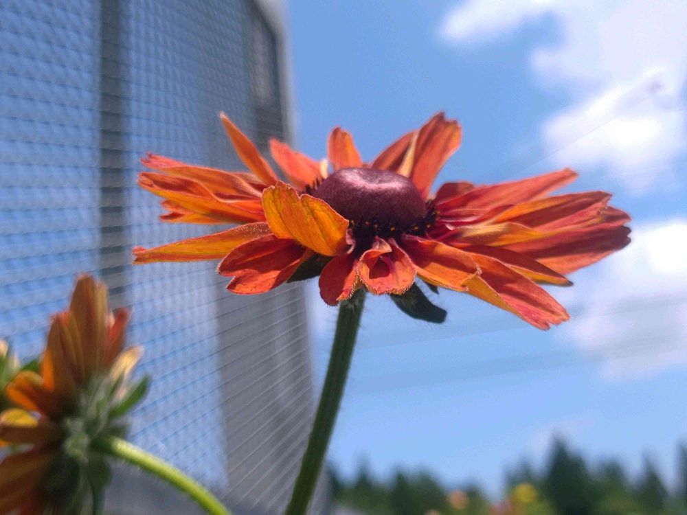 猛暑で枯れた八重咲きの傍らで、小ぶりに咲いてた渋いカラーが今年の主役🤎