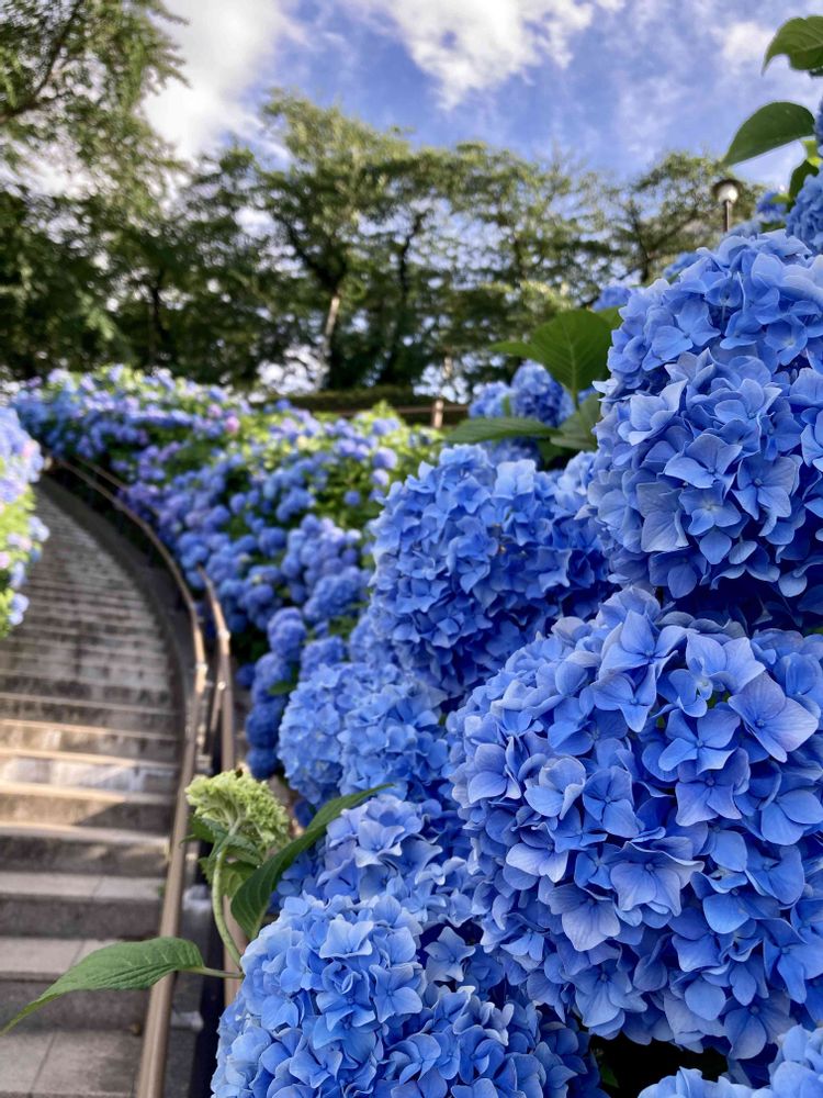 一気に登ると目眩のしそうな階段も、紫陽花見ながらだと全然疲れずに登っていました。何度も立ち止まってしまうから😄
