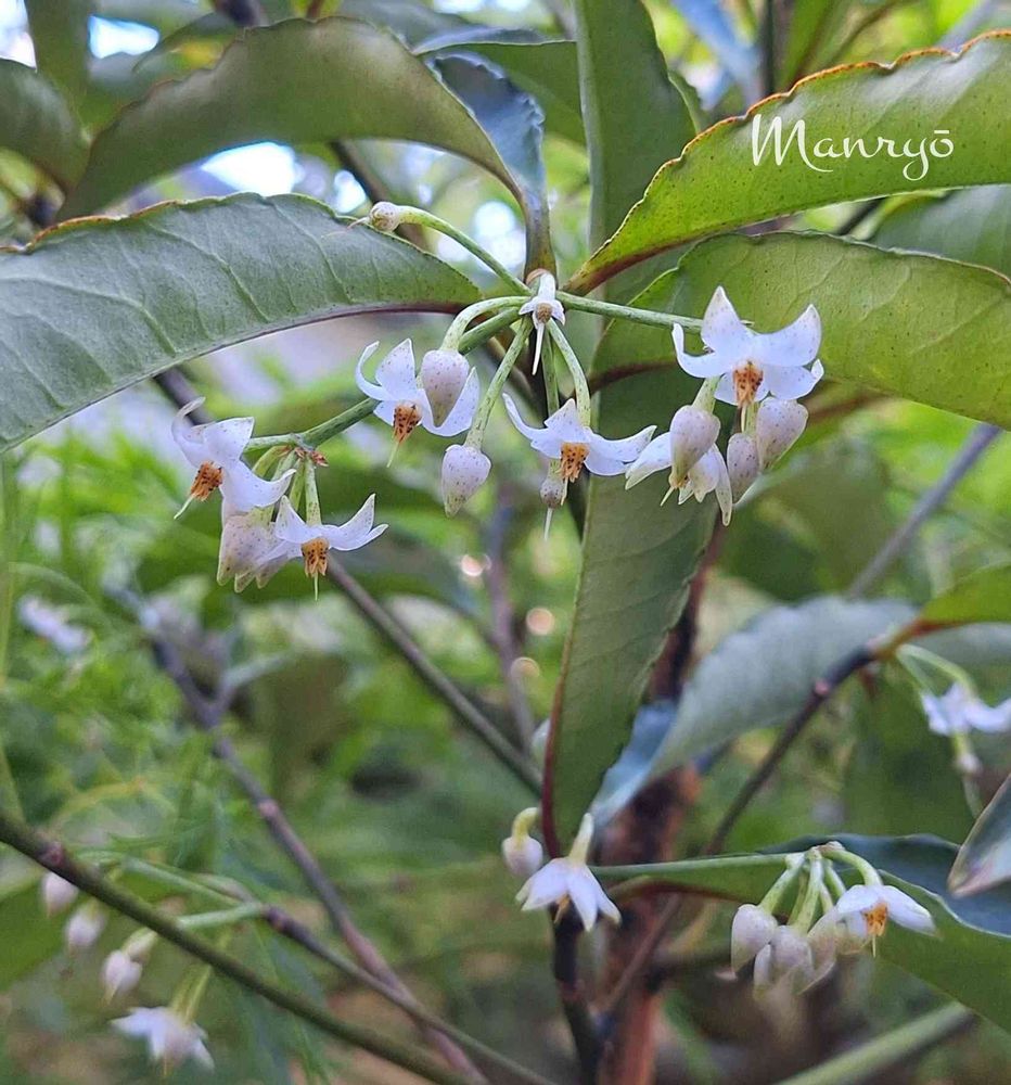 万両 下向きに咲く一日花 次々に咲いては終わります