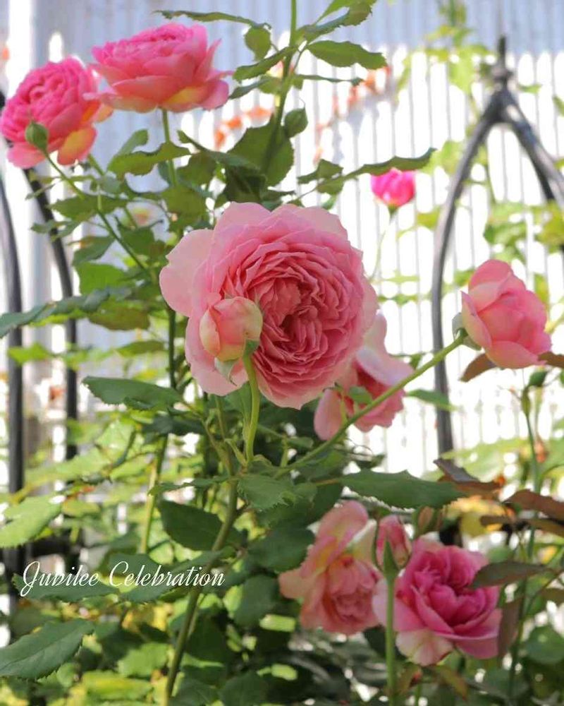 今朝のジュビリーセレブレーションです。この子は本当に次々よく咲くイングリッシュローズですね。たおやかでうつむき加減が可愛いです。ただ樹勢がものすごくてどうやってもまとまらない自由な感じの子です。